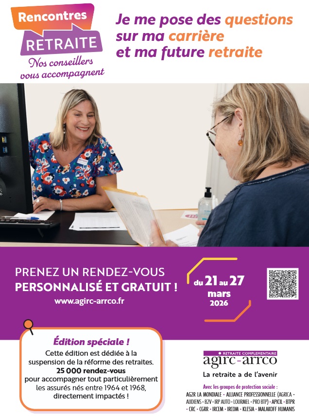 Durant cette édition spéciale des Rencontres retraite consacrée à cette suspension, les assurés bénéficieront d’un entretien personnalisé de 20 minutes. Les conseillers retraite de l’Agirc-Arrco, répondront à leurs interrogations et les aideront à comprendre les effets de la suspension de la réforme sur leur situation individuelle. À l’issue de cet échange, l’assuré obtient une vision claire de ses droits et des étapes de son futur départ à la retraite.