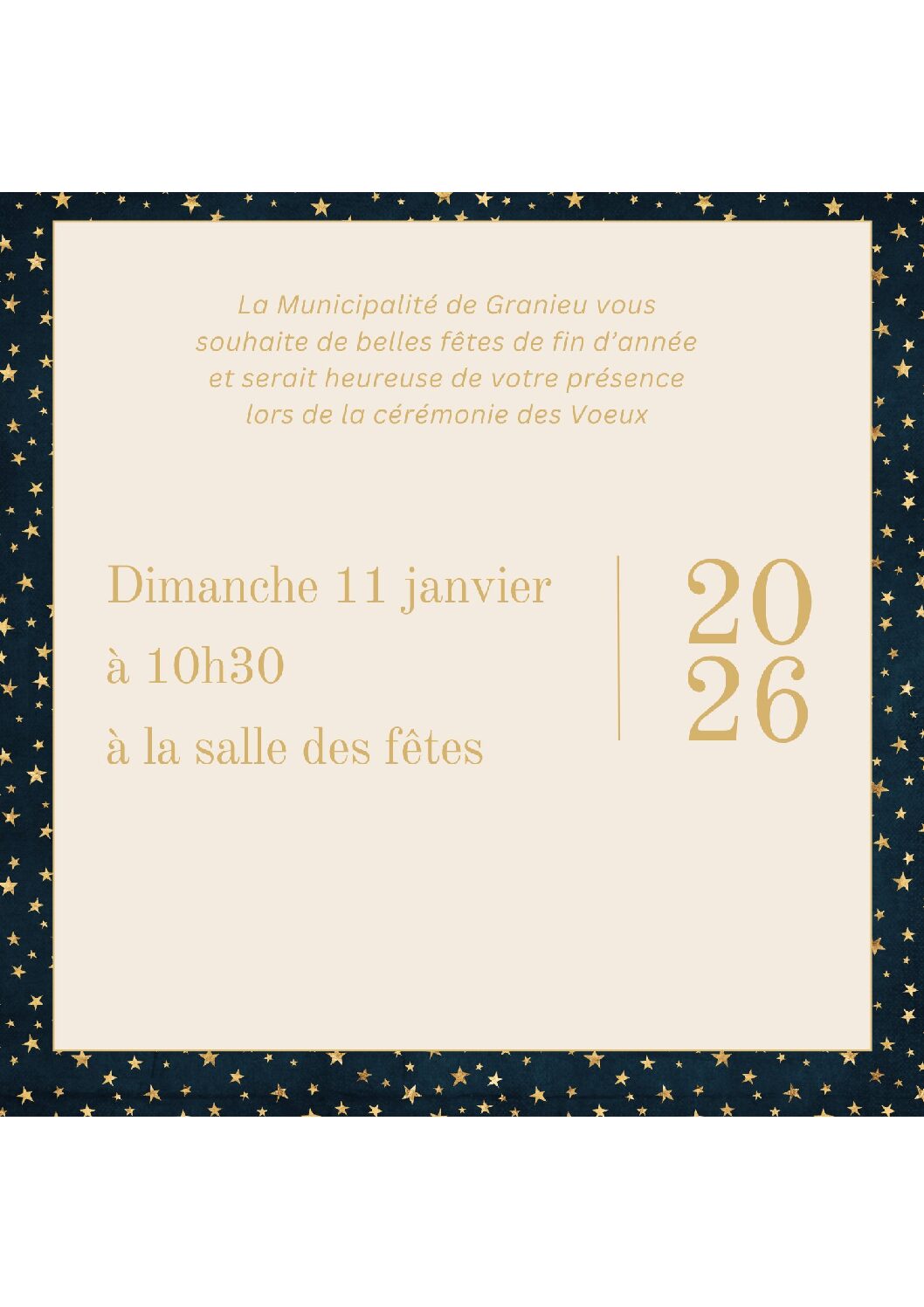 La Municipalité vous invite à venir prendre le verre de l’amitié à l’occasion de la traditionnelle cérémonie des Voeux.